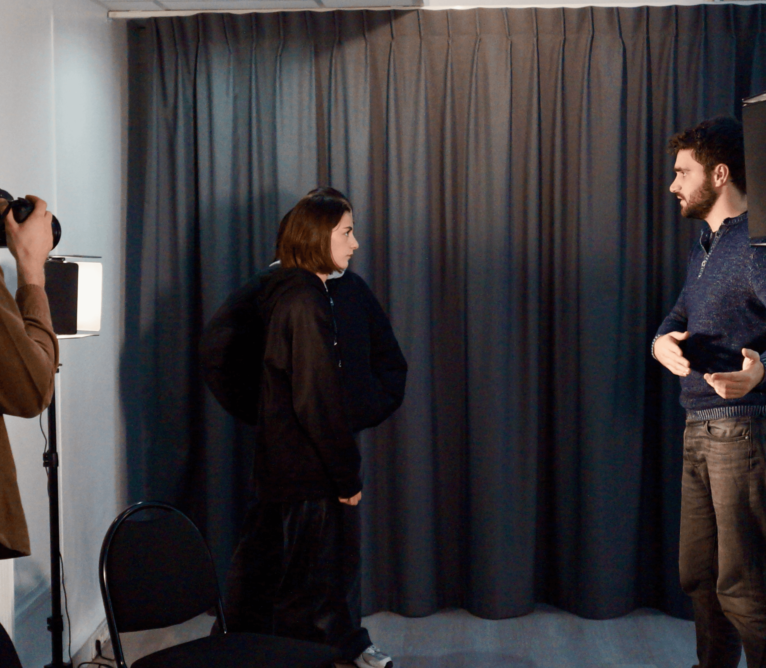 Bases techniques de l’acteur – travail sur le jeu face caméra, textes et interprétation, corps, voix, improvisation.